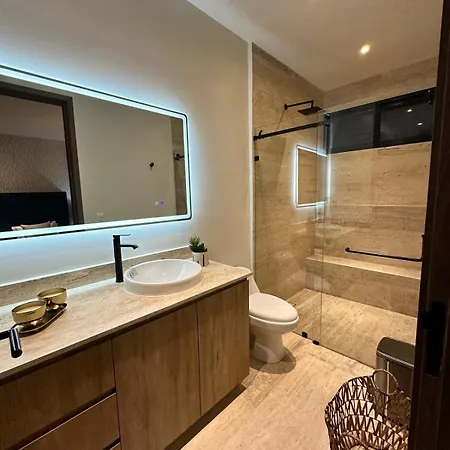 Das Apartamento En Cancun bietet einen Patio, einen Balkon und einen Ankleidebereich und Annehmlichkeiten wie eine Klimaanlage. Die Unterkünfte verfügt über 4 Badezimmer. Außerdem gibt es hier eine Badewanne, eine behindertengerechte Dusche und eine getrennte Toilette.